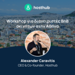 Η Hosthub διοργανώνει δωρεάν workshops σε όλη την Ελλάδα, για τέταρτη συνεχόμενη χρονιά, στο πλαίσιο ενημέρωσης και επιμόρφωσης των διαχειριστών βραχυχρόνιας μίσθωσης για τις νέες τάσεις της αγοράς με σκοπό την ανταλλαγή απόψεων και ιδεών, μεταξύ των διαχειριστών και των ειδικών του κλάδου.